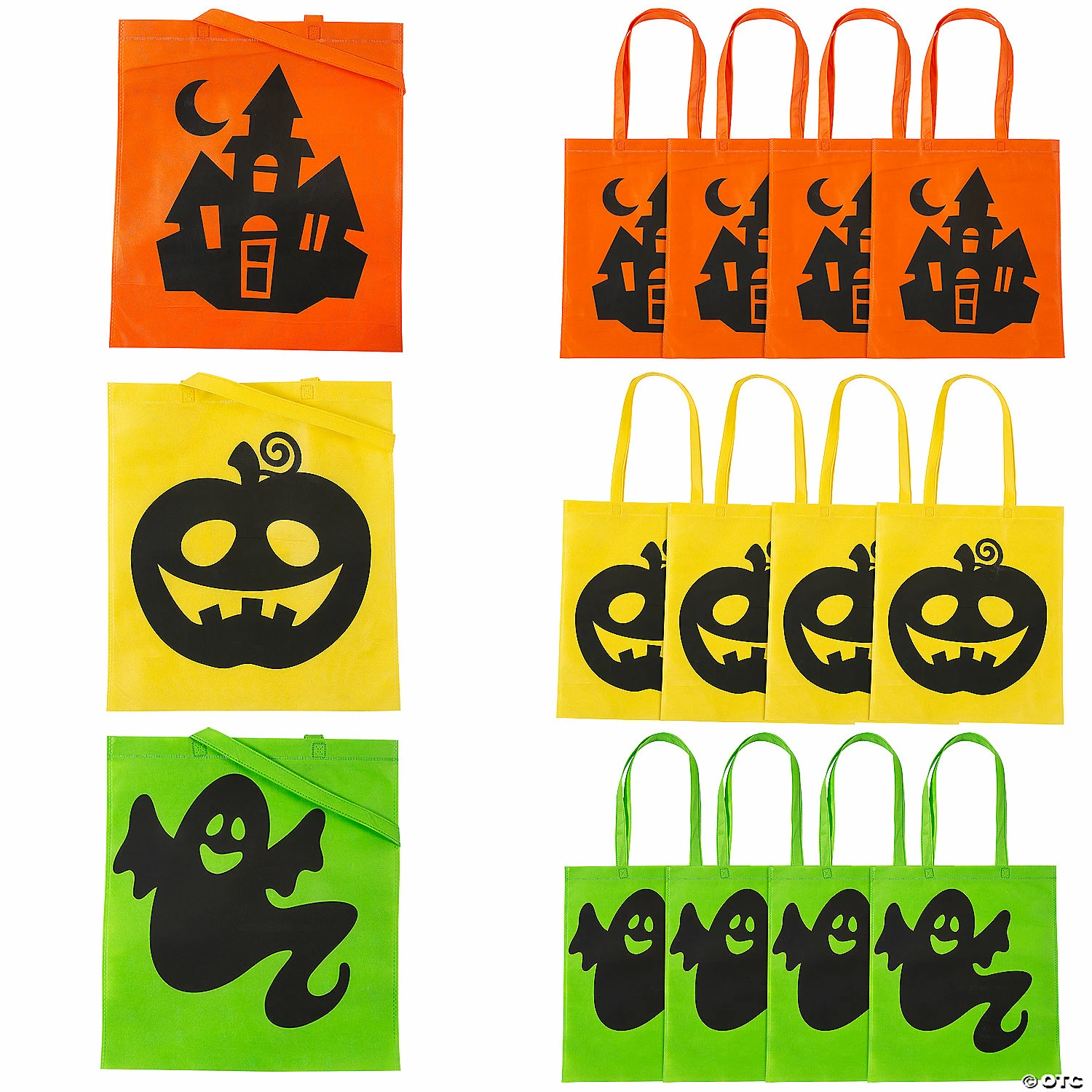 • Multi-purpose: These tote bags can carry a wide range of everyday essentials as well as Halloween trick-or-treats! Bring them along with you on Halloween night or carry them for special outings to the park, to school parties, or even the store. You’ll be glad you did! • Durable Quality: Made of cloth, these sturdy Halloween tote bags won’t let you or your accessories down. Plus, you can easily store the reusable bags away until you need them again.• Travel-Friendly: No matter where your day takes you – on Halloween night or the rest of the holiday season – these tote bags are sure to be a handy companion! Designed with easy-to-use straps and spacious interior compartments, these spooktacular tote bags are ready for on-the-go fun! Product Description:Need some trick-or-treating bags? Well, you’ve hit the jackpot! These sturdy bags are a great trick-or-treat size! Use them as reusable shopping bags during October to be in the Halloween spirit wherever you are, or fill them up with treats and prizes as Halloween party favor bags. Assorted colors and designs. © OTCSize: 15″ x 17″ with 10″ handles.Quantity: 12Material: Nonwoven polypropylene.