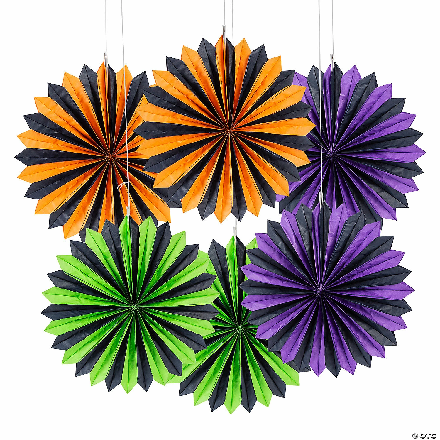 • CREATIVE USES: Hanging fans are great as party decorations, and also work for Halloween art projects and creative displays.• PERFECT FOR ANY EVENT: From Halloween parties to kids’ haunted houses, these hanging fans make the perfect party decorations. They’re versatile and fun!• VIBRANT COLORS: Choose the hanging fan color that best matches your celebration’s theme for pops of color that will impress guests.• BUDGET-FRIENDLY DECORATIONS: You won’t find these Halloween hanging fans at this low price anywhere else! Why spend more on party decorations when you don’t have to?Product Description:Transform any space into a Halloween-themed party with these hanging fans. Featuring Halloween colors, these party decorations are great for Halloween parties that aren’t setting out to be super creepy. If hanging scary spiders and screaming zombies from the ceiling might scare your young guests, these colorful hanging fans are a safer bet..Size: 6” diam.Shape: RoundQuantity: 6Material: PaperSimple assembly required.