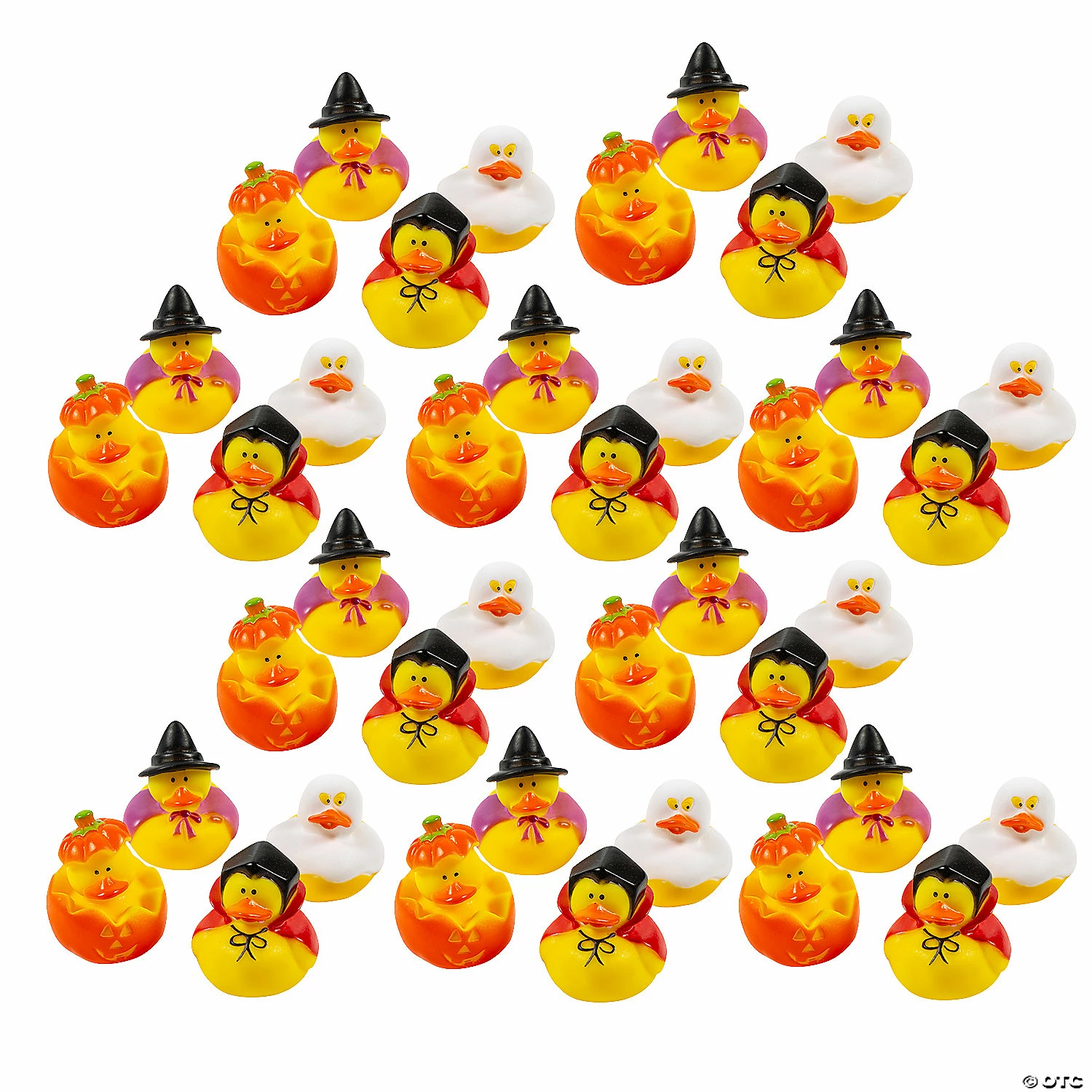 Beware these Halloween Rubber Duckies—they’re ready to quack up the Halloween spirit! These cute, adorable duckies are dressed in fun Halloween costumes that will light up any party. Give them out to trick-or-treaters or use them as unique goodies in gift bags! Vinyl. (120 pcs. per unit) Duckies do not float upright. 2″ © OTC
