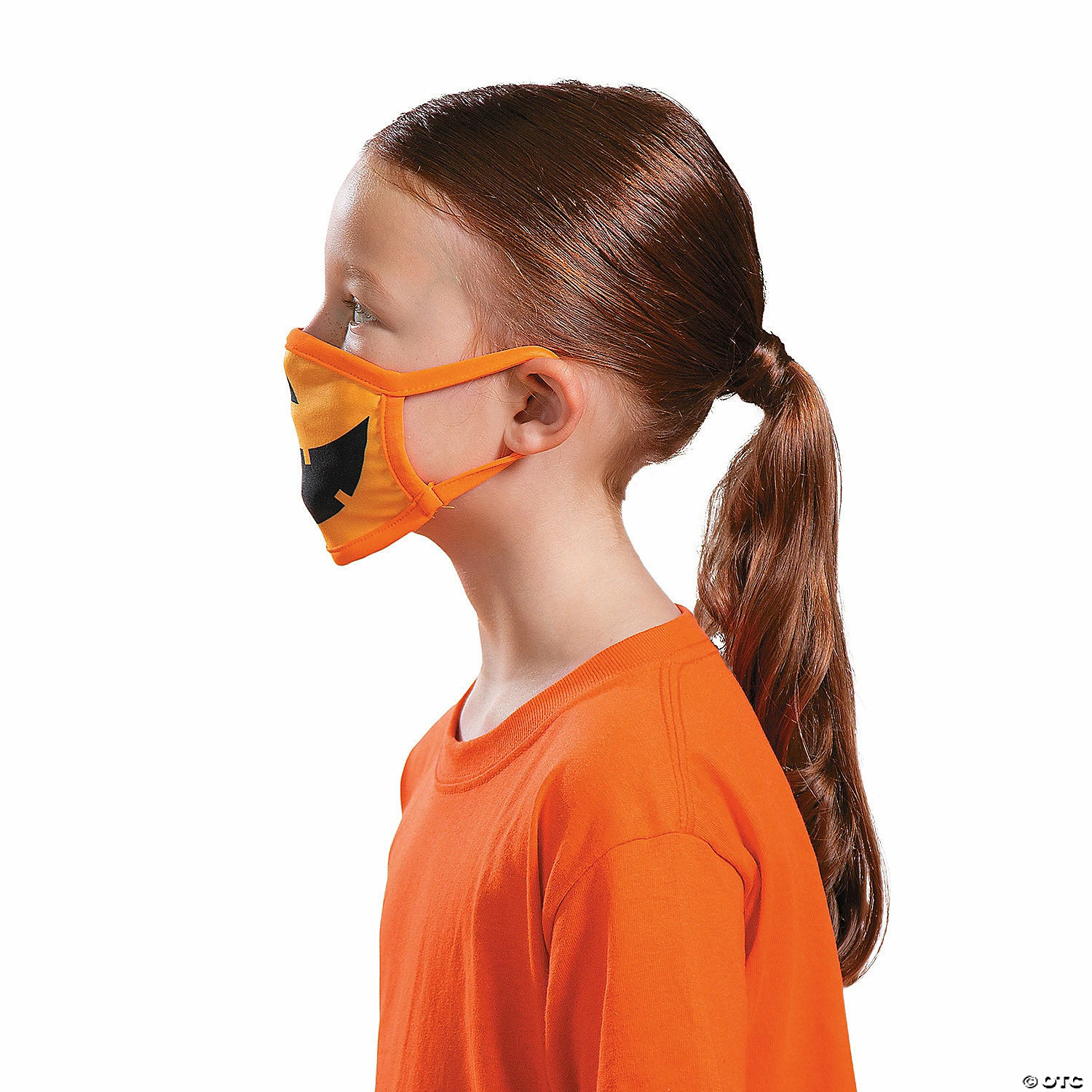 Crack a grin with these smiling jack-o’-lantern face masks! Made specifically for kids’ faces, these too-cute-to-spook coverings will really get them in the Halloween spirit. Little boos and ghouls will love sporting these masks while trick-or-treating, hitting up the pumpkin patch or just heading around town. These mask packs include three each of two different designs, so each day you can choose which style meets your mood! Polyester and cotton. (6 pcs. per unit) 5 1/2″ x 4 1/4″ with 2 1/2″ ear loops. Imported. © OTC