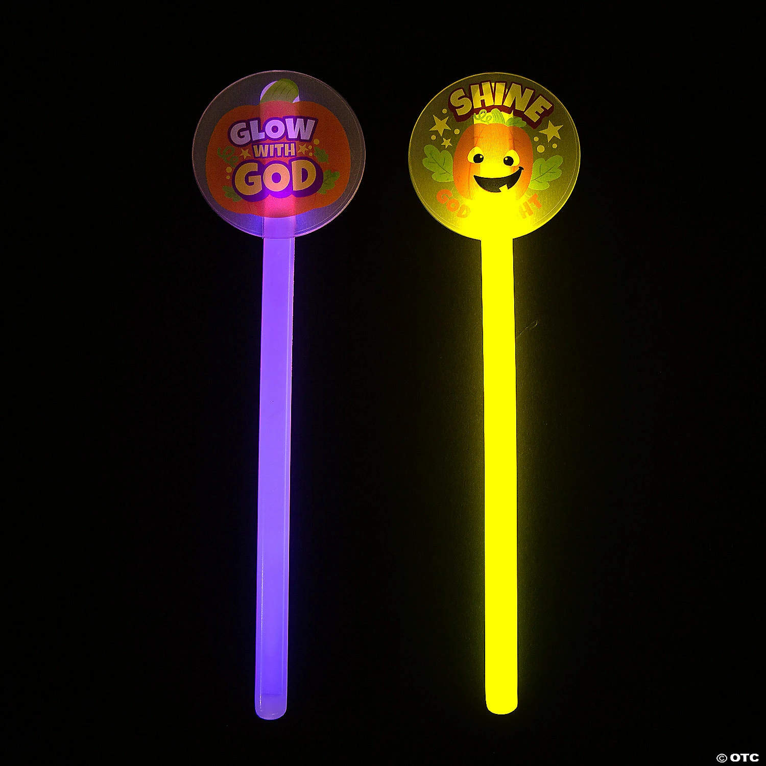 Celebrate God while celebrating Halloween with these glow wands! Each wand features a religious message along with Halloween imagery, making these perfect for Harvest Festivals or religious Halloween carnivals at church. Help kids remember to “Glow with God” and to “Shine God’s Light” this Halloween season! Plastic. 8 1/4″ Simply snap and shake to activate the glow. © OTC