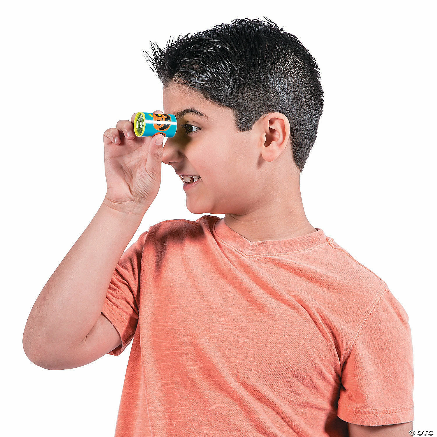 These kaleidoscopes feature a one-eyed monster, a skeleton, a jack-o’-lantern and a black cat! Change your point of view when you look through them! Great for candy-alternative treats for your trick-or-treaters or for goody bags for your Halloween party. Plastic. (4 dozen per unit) 1 3/4″ © OTC
