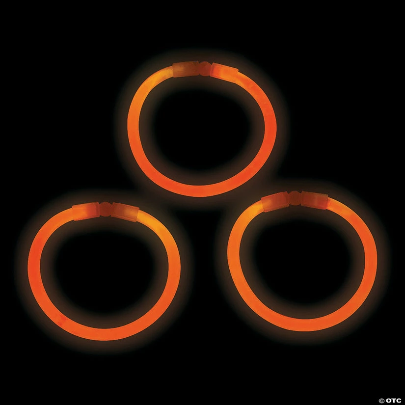 Snap and shake these 8″ bracelets for a colorful burst of light! Brighten your life with these Orange Glow Bracelets. Use at parties, sporting events or concerts to make every event more fun! Kids love to wear several at once! Glow bracelets are also easy safety items; have your child wear one when playing outdoors at night and include them on their next camping trip! Plastic. (50 pcs. per unit).