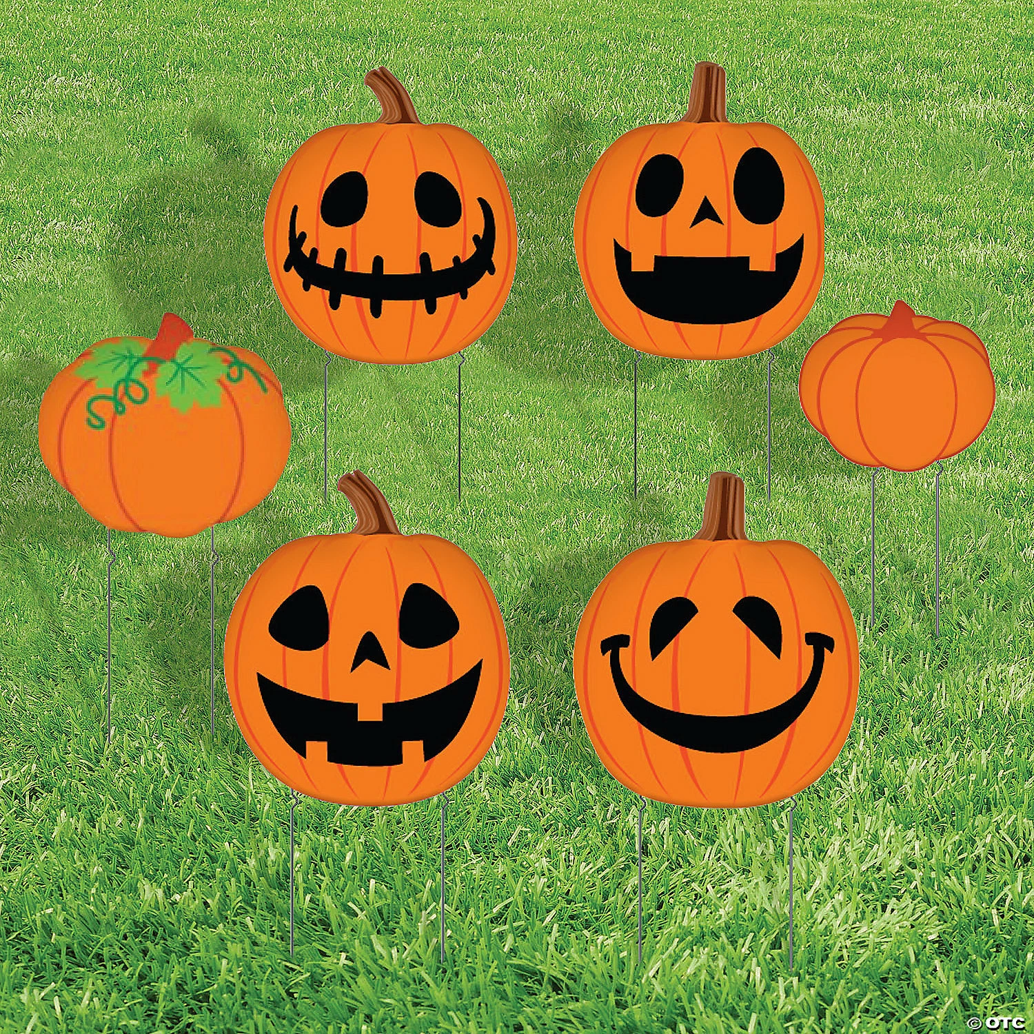 Transform your front yard into a pumpkin patch for Halloween without worrying about the pumpkins decaying or getting smashed! The yard signs included in this fun outdoor decorating kit are perfect for Halloween and feature various pumpkins including Jack-o-Lanterns and more! Be sure to check out all the Spooktacular outdoor Halloween decorations available here on this website. (14 pcs. per unit) Assortment may vary.Includes:• 6 Corrugated Plastic Fall Pumpkin Sidewalk Signs (Single-sided. Includes metal stakes. 12″ x 10 1/2″ Simple assembly required.)• 4 Corrugated Plastic Halloween Jack-o-Lantern Yard Stakes (Single-sided. Includes metal stakes. 17″ x 20″ Simple assembly required.)• 4 Corrugated Plastic Pumpkin Yard Signs (Single-sided. Includes metal stakes. 17″ x 15 1/4″ Simple assembly required.)