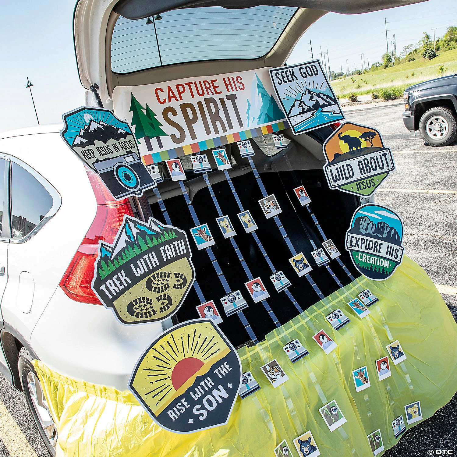 Deck out your trunk in style! Boos and ghouls visiting your trunk or treat station will go wild for these decorations, featuring faithful messages and bright colors. Whether you’re headed to a school, community or church trunk or treat event, this vibrant Halloween décor is a cut above the rest! (8 pcs. per unit)Includes:• 1 Cardstock Wild Encounters VBS Door Curtain with Border (3 ft. x 77″)• 6 Cardstock Wild Encounters VBS Cutouts (12″ – 15″ x 13 1/4″ – 15″)• 1 Plastic Yellow Pleated Table Skirt (29″ x 14 ft. Includes double-sided adhesive tape. Tablecloth sold separately.)• Assortments are subject to change at any time and may vary from picture shown. Substituted items will be similar in nature.