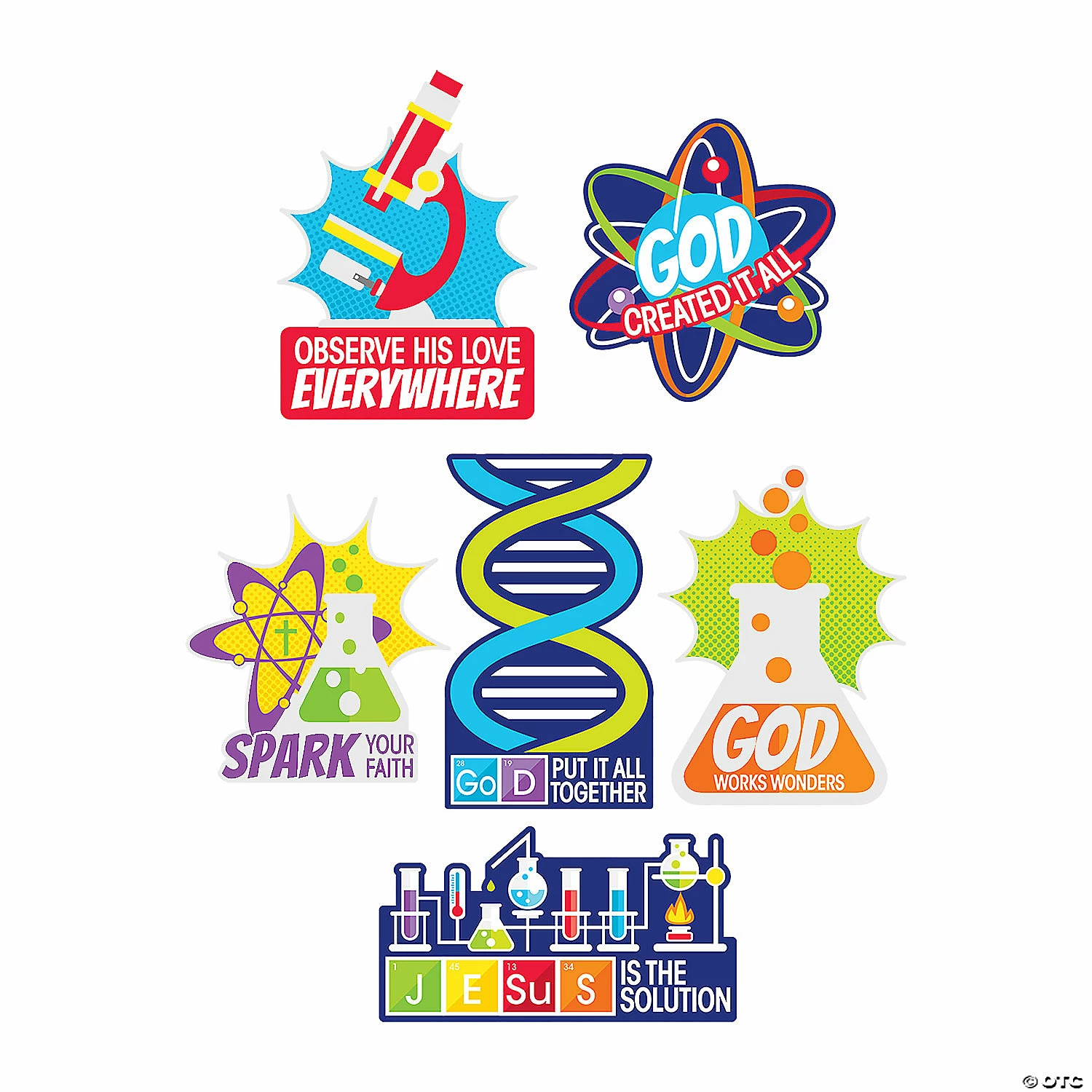 Decorate the walls of your Science VBS space with these colorful cutouts. Perfect to display near the registration desk to get everyone excited about an upcoming Science VBS session, these cutouts are also great as wall decorations during the session. Featuring bright colors and Science VBS images and messaging, these fun cutouts are a Science VBS decoration must-have! Cardstock. (6 pcs. per set) 12″ – 20 1/2″ x 11 1/4″ – 20 1/2″ © OTC