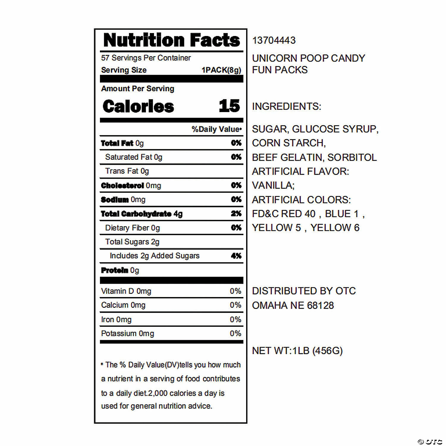 Perfect to use for a multitude of special occasions, these Unicorn Poop Candy Fun Packs are a fun addition to your party supplies. Hand these marshmallows out to students as prizes and giveaways during your classroom birthday parties, or use them as party favors for a unicorn-themed birthday bash. Truly, the options are endless as any and every event calls for unicorn poop! © OTC• Strawberry flavor. • (20 pcs. per pack, 57 pkgs. per unit) • Total wt., 1 lb.• Fat-Free. • Candy is non-returnable. For more information, visit our “Return Policy” page located on our website.• Ingredient, nutrition, allergen and other product information are provided on our Web and Mobile sites for reference purpose only, without warranty or representation as to accuracy. Manufacturers adjust their labeling regularly and are solely responsible for the accuracy of the information. For general questions concerning these items, please contact our customer service at 800-228-0475.